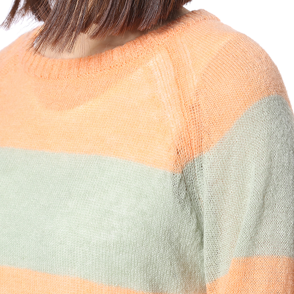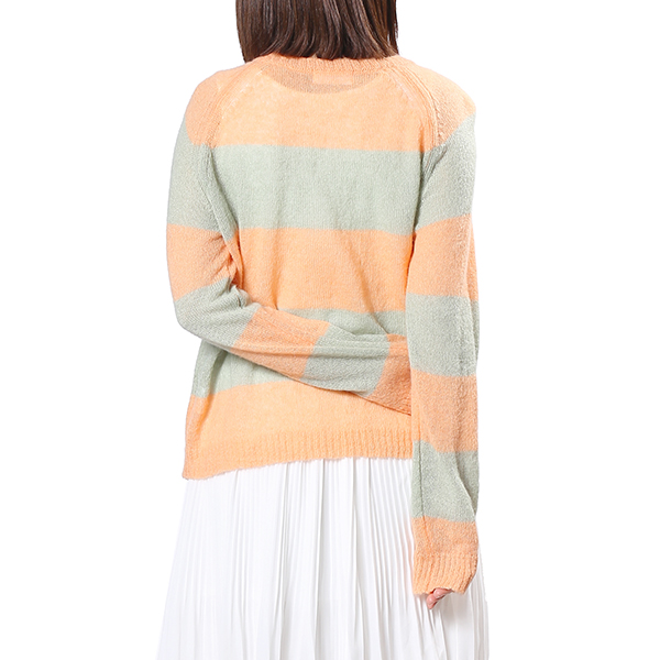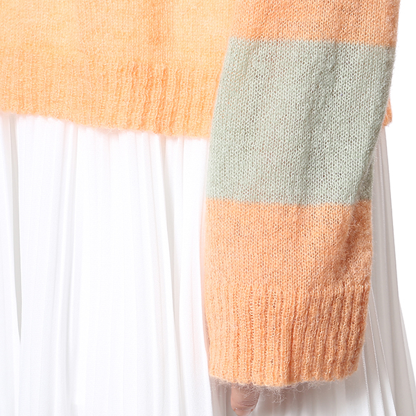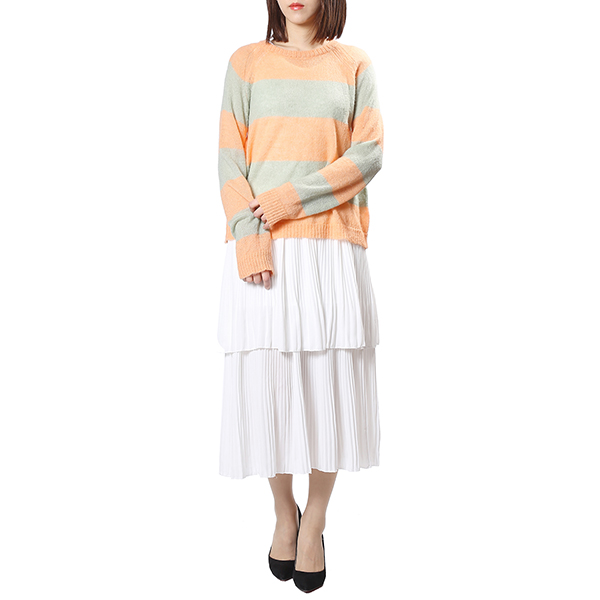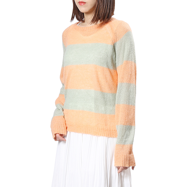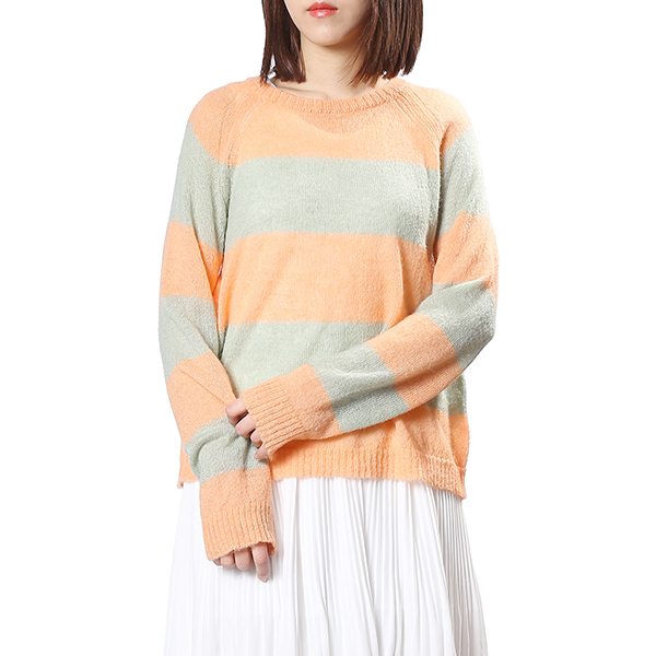 은은한 오렌지 컬러에 라이트그린을 배색하여 감각적인 데일리 니트 입니다.