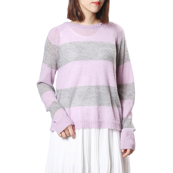 은은한 바이올렛 컬러에 그레이를 배색하여 감각적인 데일리 니트 입니다.