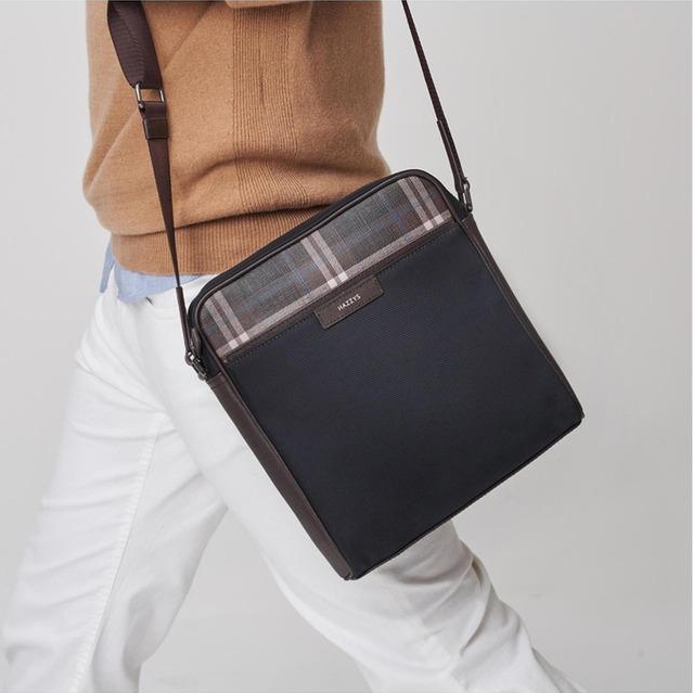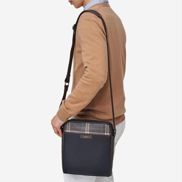 체크 패턴과 소가죽을 배색하여 포인트를 주었으며 나일론 소재를 사용하여 가벼운 크로스백입니다.