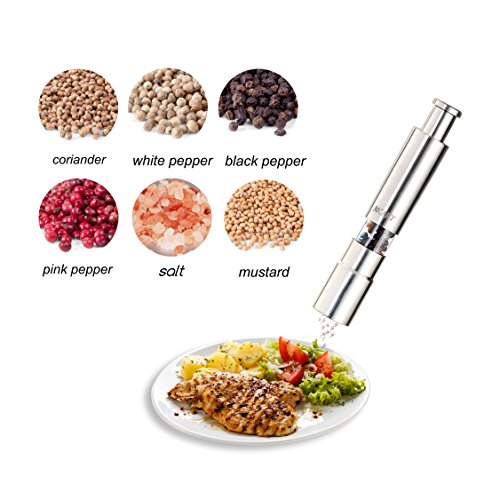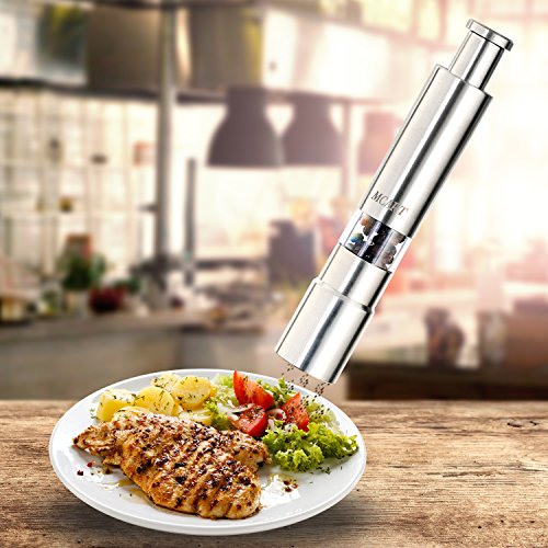 MCART Stainless Steel Thumb Push Salt and Pepper Grinder, One Hand Operated Salt and Pepper Mill