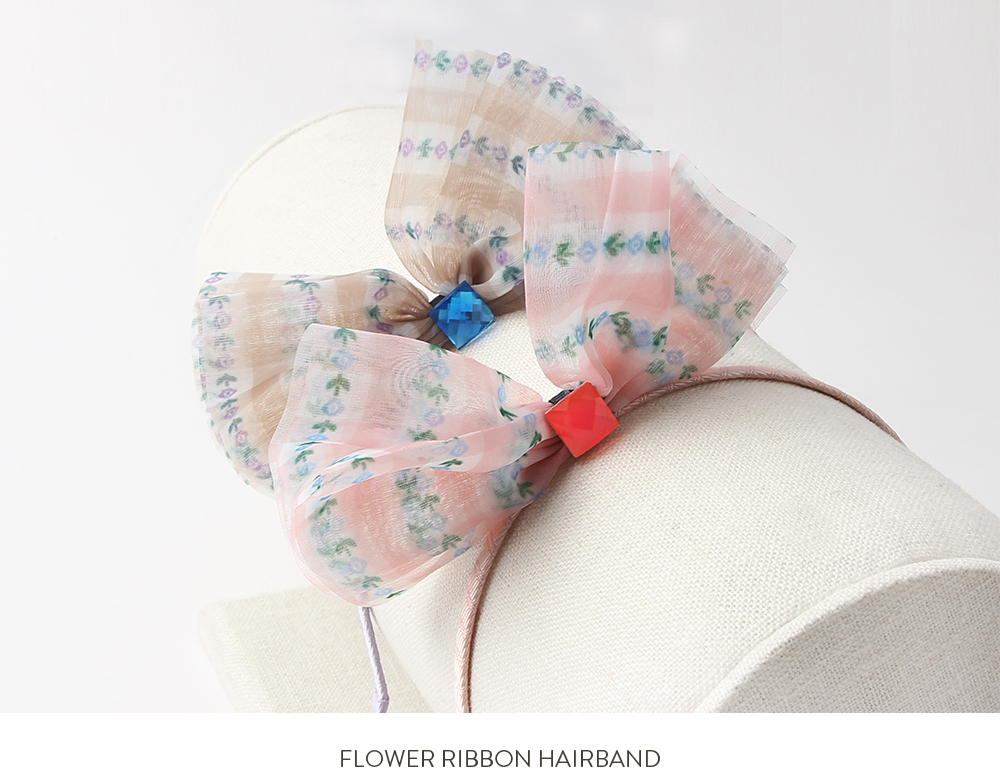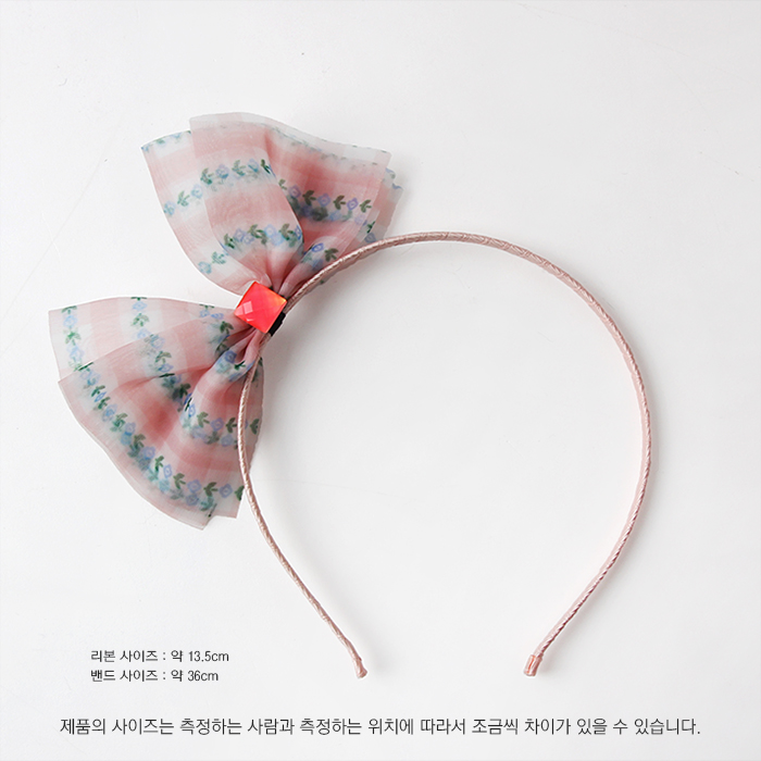 스퀘어 쉐입의 오간자가 포인트로 붙어있어 특별한 날 포인트로 발랄하게 착용할 수도 있고 리본의 크기가 크지 않아 데일리로도 강력 추천드려요~