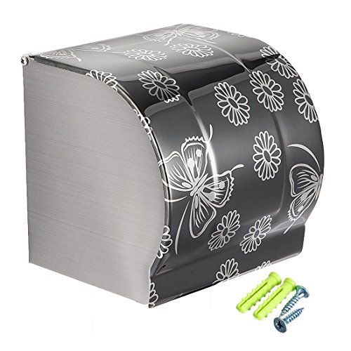 uxcell 120mmx118mmx123mm Stainless Steel Polished Finish Wall-Mounted Toilet Paper Holder w Cover