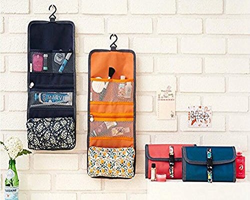 Travel Roll up Big Capacity Cosmetic Bag Makeup Wash Toiletry Hanging Bag Bathroom Organizer Pouch Doubtless Bay (orange)