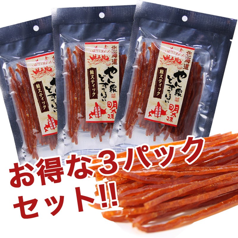 商品名やん衆どすこほい 鮭とば(カット)明太(めんたい)スティック3袋セット