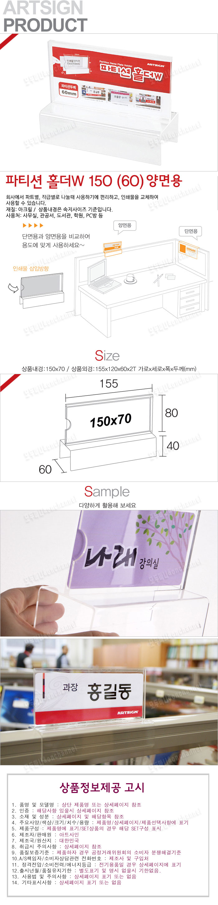 - 품명 및 모델명파티션홀더(150x70mmx폭60mm)