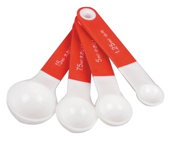 fk094igrjsわかりにくい「少々」を計量できるスプーンが付いたスタッキング可能な計量スプーンセットです サイズ (約)全長130×幅45×高さ40mm 個装サイズ:7×4×18cm 重量 個装重量:82g 素材・材質 本体:ポリプロピレン ハンドル:エラストマー 仕様 スタッキング収納:可 粉・液体・熱湯:可 食器洗い乾燥機:可 製造国 中国 取り外し可能な計量スプーン4点セット 【計量】 ・15ml:大さじ1 ・7.5ml:大さじ1/2 ・5ml:小さじ1 ・1.25ml:少々 ブラック レッド ※スタッキング収納イメージ わかりにくい「少々」を計量できるスプーンが付いたスタッキング可能な計量スプーンセットです