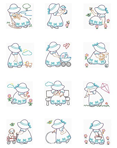 Jack Dempsey Stamped White Nursery Quilt Blocks, 9-Inch by 9-Inch, Sunbonnet Sue, 12-Pack