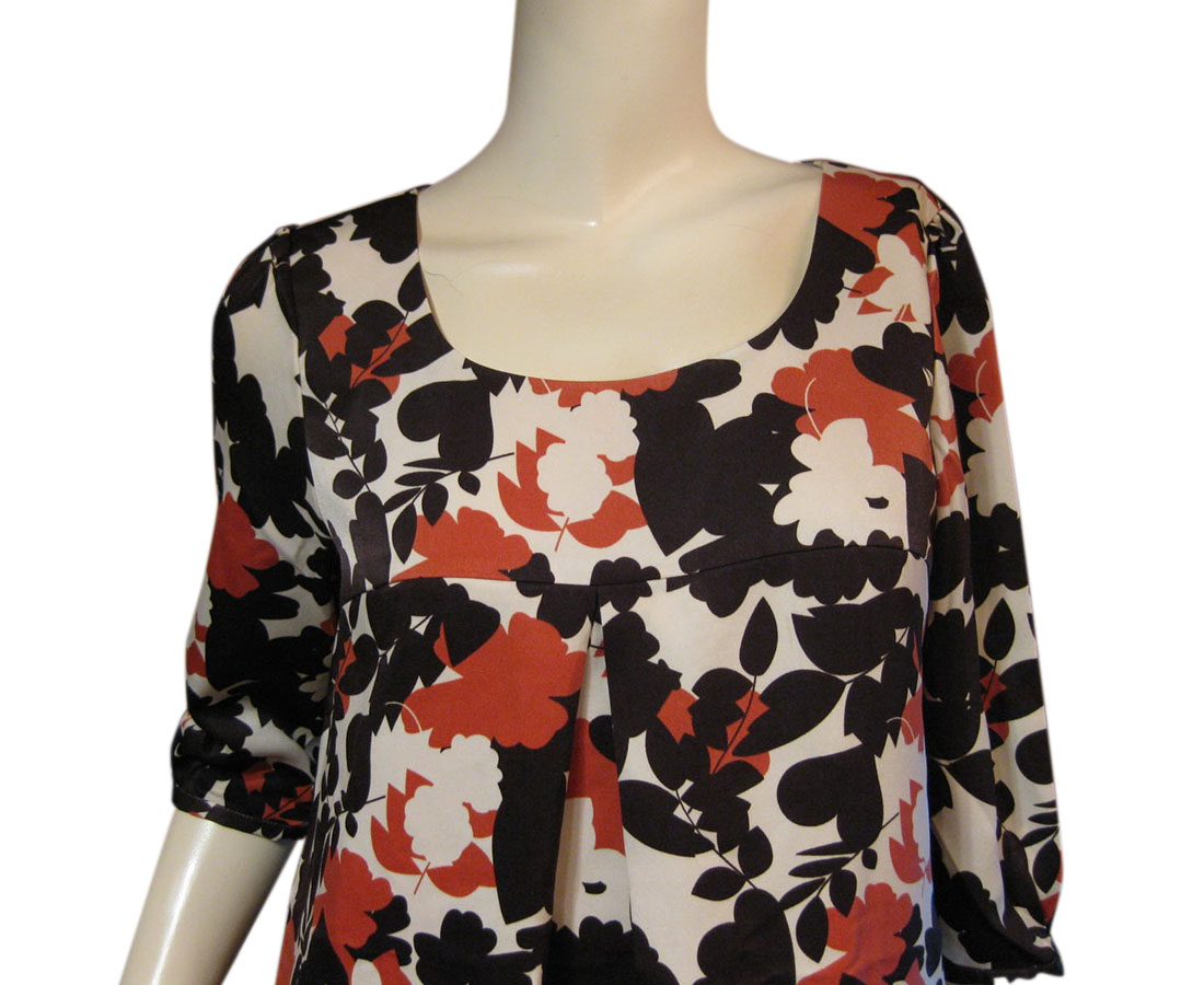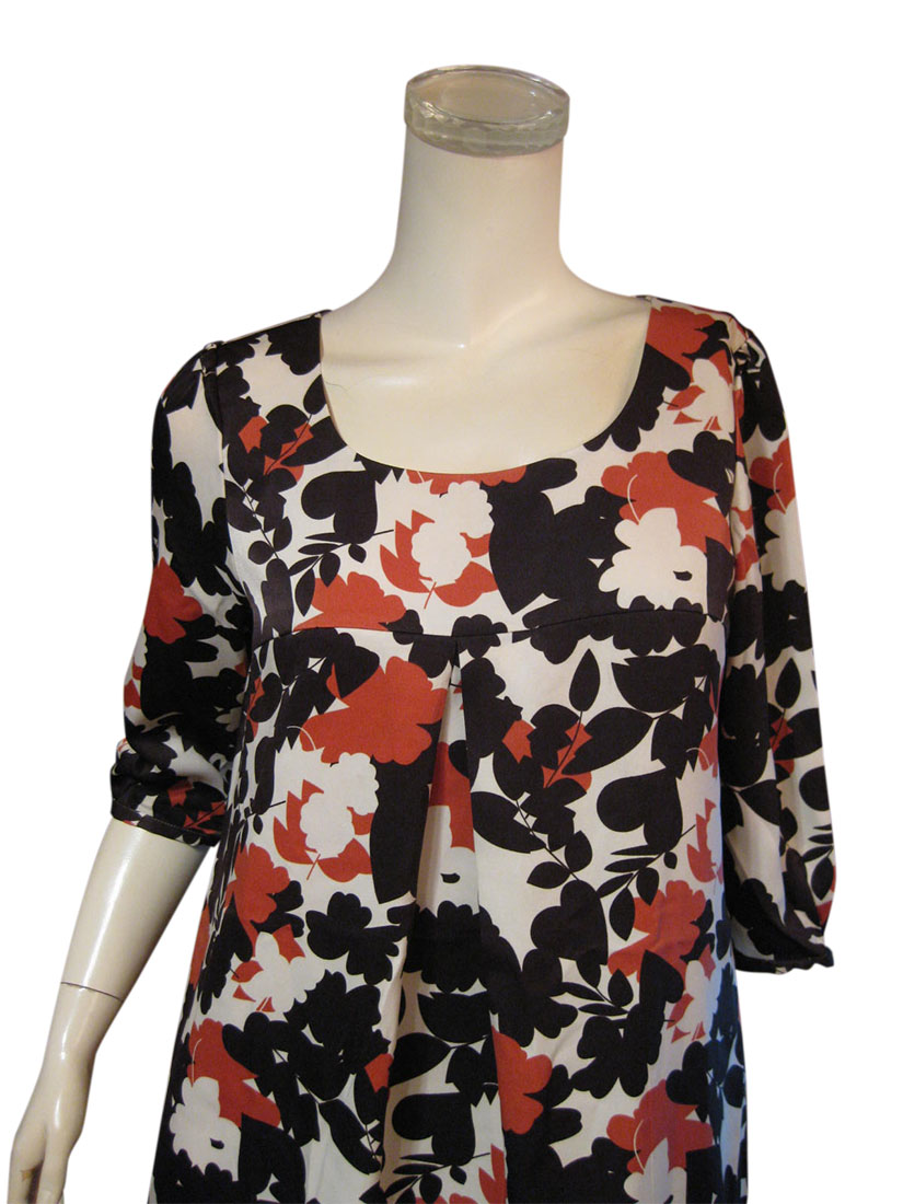 影絵のような花&葉柄のプリントを全体に配した上品なワンピース。