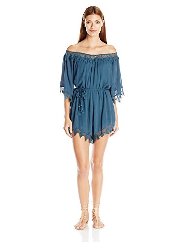 Product DescriptionBeautifully embroidered trim off the shoulder romper with a tie waist0