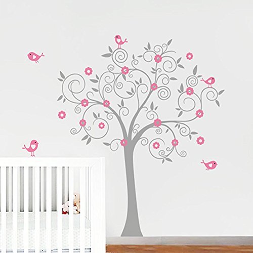 -. Title : Birds Flowers Tree Wall Decal Sticker Mural Wallpaper Vinyl Baby Room Nursery Play Room Girls Romantic 180x180cm Home Decoration