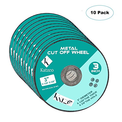 Cut Off Wheels- For Cutting Metal and Steel -3 Inch 60 Grit, To Use With Angle Grinders - 3" X 1/25" X 3/8" Max RPM 20300, 80 M/S-10 Pack -By Katzco