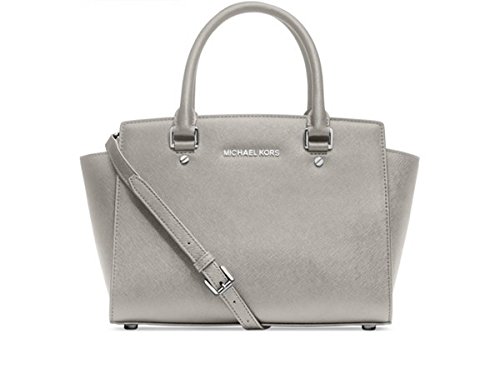 -. Title : MICHAEL Selma Medium Satchel (Pearl Grey/Silver)