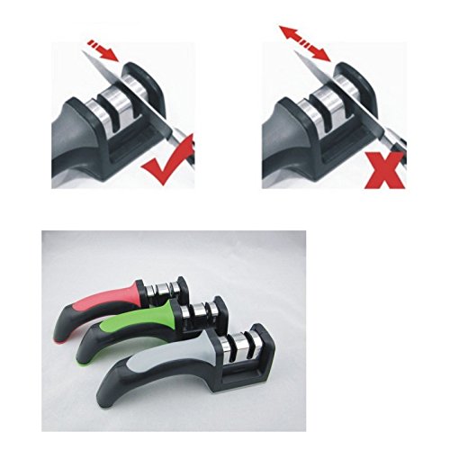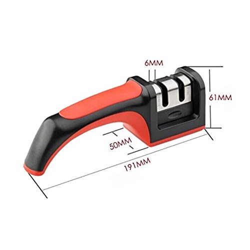You\''ll love the design of this high quality knife sharpener. It\''s comfortable to hold, and it\''s easy and safe to use. It\''s good to sharpen most knives, and gives them a super bright edge to slice through anything in your kitchen.