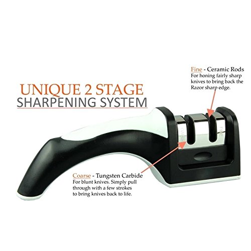 he top rated, 2 stage sharpening system is excellent for repairing damaged or very blunt blades, and also to return a bright edge to your knives