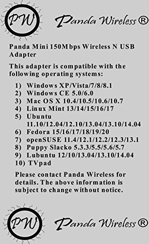 -. Title : Panda Mini Wifi 150Mbps Wireless N USB Adapter - Windows XP/Vista/7/8/8.1, Mint, Ubuntu, Fedora, openSUSE, Puppy Linux and TVpad