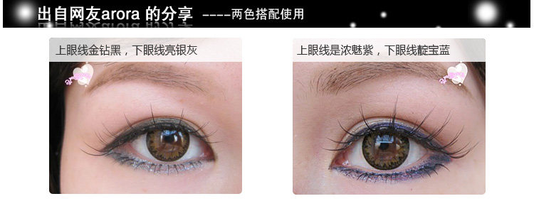 ![]() | 再好的眼线也不能保证每位妹妹都不晕妆,因为晕染的原因有很多,比如天气原因,眼皮内双、油性皮肤以及特定场合使用(如游泳时)等等,而且皮肤分泌的油脂有卸妆的作用,相信亲们能理解的哦! |