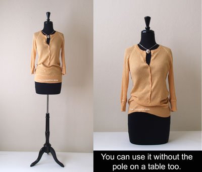 - Feature : High Density Foam Mannequin covered with jersey / Pinnable and lightweight / To Display Large and some Medium sizes clothing / Quality black wooden base / Great clothing display for retail stores, taking pictures or decorate a room