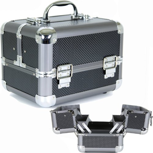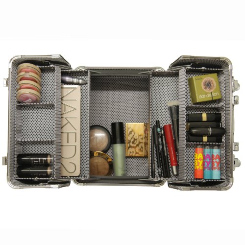 [Product Information]- Large makeup train case organizes makeup including brushes, eyeshadows, compacts, palettes, and blushes