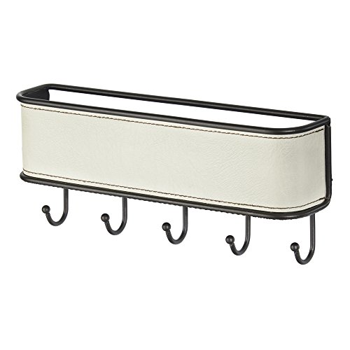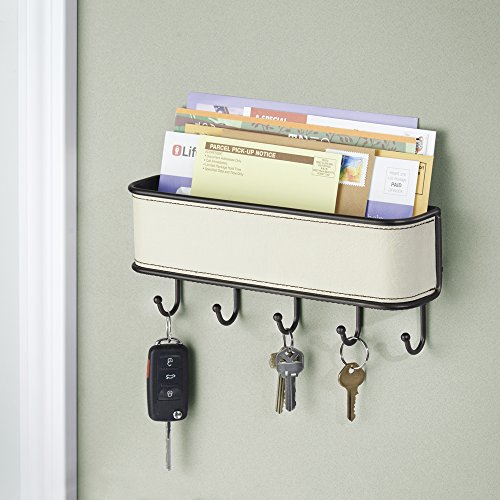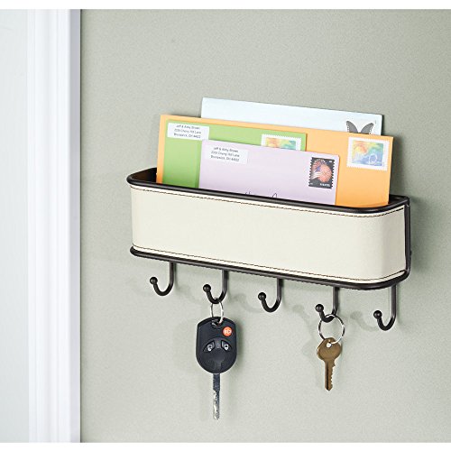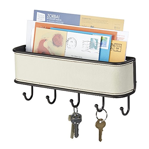 InterDesign Laredo Mail Holder and Key Rack Organizer - Wall Mounted Letter Shelf and Key Hooks for Entryway or Kitchen, Cream/Bronze
