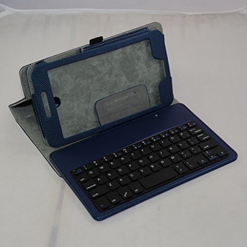 ASUS MeMO Pad 7 LTE ME375CL Micro USB Keyboard Case,Mama Mouth Rotary Stand PU Leather Case Cover With Removable Micro USB Keyboard for 7" ASUS MeMO Pad 7 LTE ME375CL Android Tablet,Dark Blue