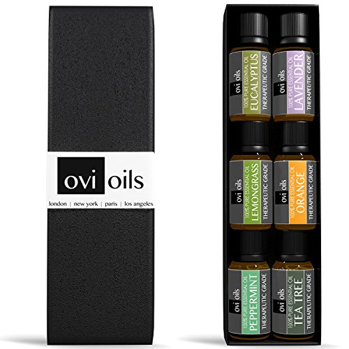 -. Feature : ✔ ESSENTIAL OILS STARTER SET - This is a wonderful aromatherapy starters kit for yourself or a beautiful gift. Signature kit contain 6 bottles of 10ml each. Scents inside: Lemongrass (Cymbopogon flexuosus), Tea Tree (Melaleuca alternifolia), Eucalyptus (Eucalyptus globules), Lavender (Lavandula angustifolia), Sweet Orange (Citrus sinensis), Peppermint (Mentha piperita). Luxurious brown amber bottles for maximum freshness. / ✔ AWARD-WINNING QUALITY - Ovi Essential Oils go through a meticulous testing process to guarantee that every bottle surpasses our unbelievable award-winning quality standards of unmatched medicinal potency properties. / ✔ BEAUTIFUL & BOLD AROMAS - Ovi Essential Oils are 100% Premium Grade and ideal for aromatherapy, diffuser usage, oil burner, massage, use in home-made cleaning products, adding to body wash & shampoo, fragrance for unscented lotion, adding to bath water, etc. Pure essential oils create a flawless balance of soul, heart, mind and body. We use the finest of planet earth's natural riches for healing qualities which have an amazing effect on your health and overall well-being. / ✔ 100% NATURAL PURE ESSENCE - Every bottle consist of 100% pure therapeutic essential oil; without any carriers, bases, additives, or fillers. Ovi Essential Oils are created using the latest world-class methods of extraction and distillation; we maintain the ideal integrity of nature's fresh flavors. Ovi's artisan extractors and distillers practice in created the best, therapeutic grade oils, using thoroughly disciplined extraction and distillation techniques. / ✔ PERSONALIZED PREMIUM QUALITY - Ovi's essential oil are created one bottle at a time with intense focus and love to yield only the most excellent high-potency therapeutic grade essential oils. To start, our agricultural professionals select the best geographical areas to capture the most amazing oil quality and best medicinal potency. We pay attention to air, water, and soil quality which results in our award-winning oil quality. Our harvesting experts select the ideal time, day, and conditions to ensure healing properties and the finest flavors.