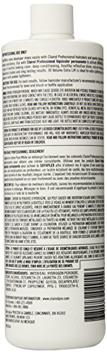 Clairol Professional pure white creme developer contains protective conditioners and emollients and is stabilized for 3 years. It is designed for use with permanent colors, and also perfect for use with all powder and liquid lighteners. Its creamy consistency makes it ideal for bowl-and-brush or bottle application. 10 volume for gentle lift. 20 volume for normal lift. 30 volume for extra lift.Feature