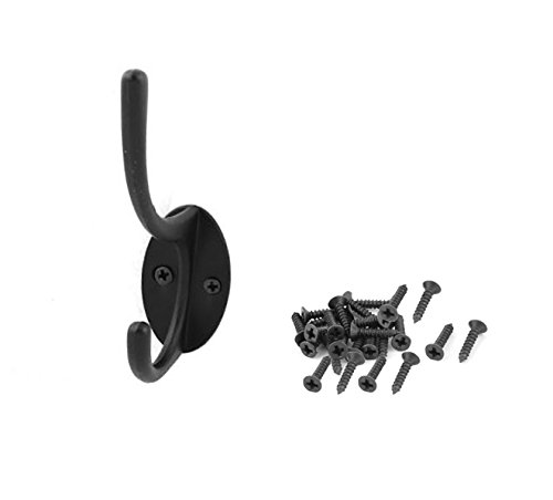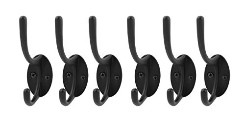 Antrader Metal Hanger Hooks Storage Hook for Clothes Key Hat Bag Black with Screws Pack of 6