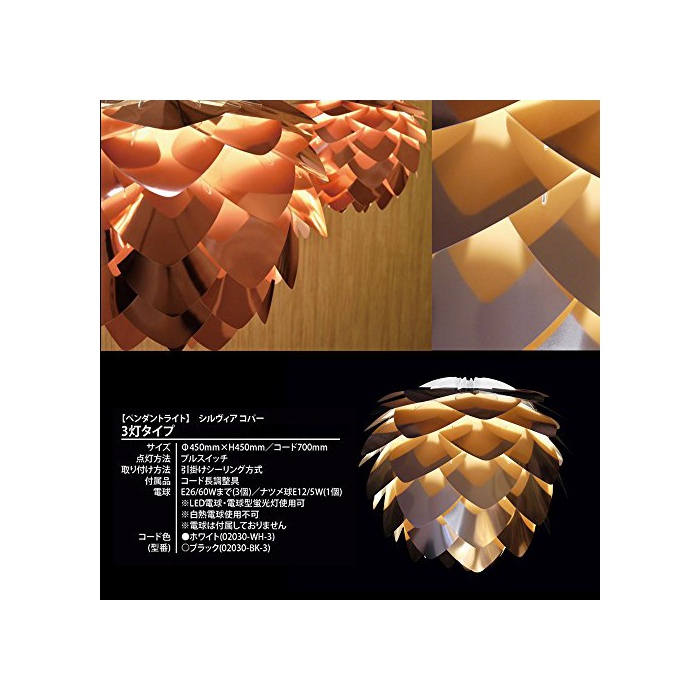 원본상품명: ヴィタ 北デンマク ペンダントライト シルビア コパ 3タイプ コド:ブラック 電球別 02030-BK-3 エルックス