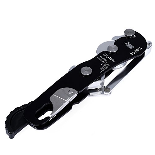-. Feature : - Great tool for rock climbing, caving, downhill, mountaineering etc. / - Made of hot forging aluminum magnesium alloy, high intensity, strong tenacity and wearability / - Self-breaking function allows you to easily stop and hold your position on rope / - Can be rapidly installed or removed from the rope without disconnecting it from the harness