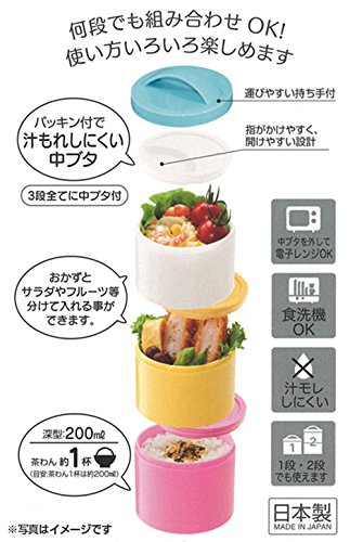 - Feature : Bottle type lunch box. / Capacity:upper container (140ml), Middle container (140ml), Bottom container (200ml) / Microwave is avairable. (Please uncap the lid), Dishwasher is available. / Less leakage designed lid with packing. / Size:/φ80 x 180mm