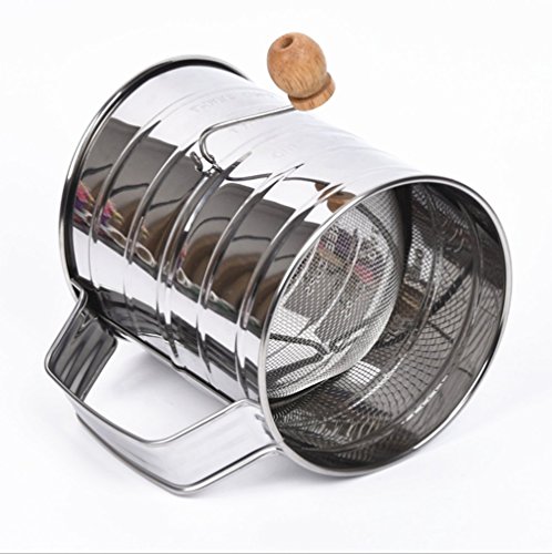 Hand crank-style flour sifters have been used for generations because they are classic and sifting flour or sugar well.