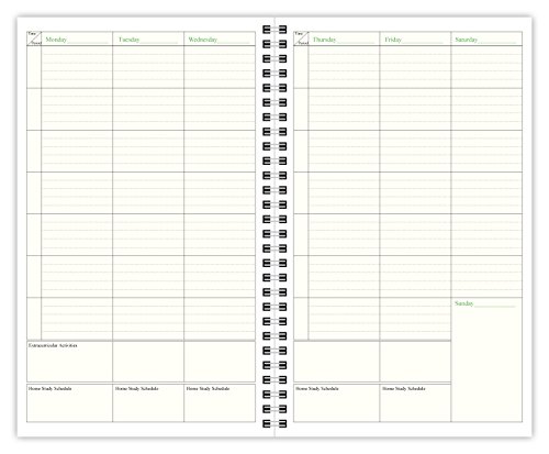 Daily planning pages with room for 7 subjects per day, plus extra-curricular activities and home study schedule every day, even weekends!