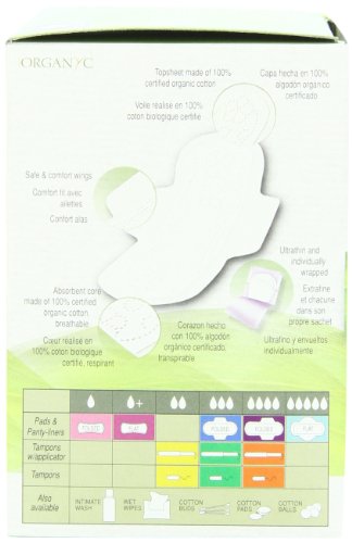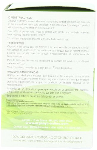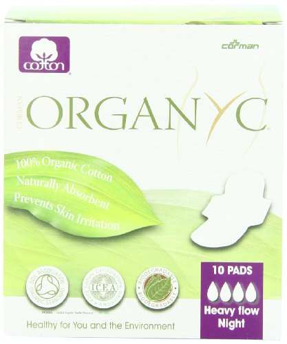 Organyc 100% Organic Cotton Pads with Wings for Sensitive Skin, HEAVY, 10 count