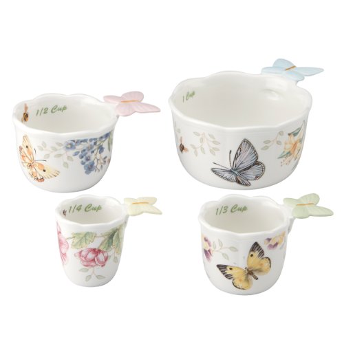Studio : Lenox Publisher : Lenox Binding : Kitchen Product Description These Butterfly Meadow measuring cups have an equal measure of artistry and functionality. Each cup is decorated with a charming garden scene of flowers, butterflies and more. The set makes a lovely gift for anyone who enjoys cooking. 0