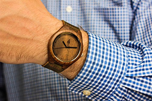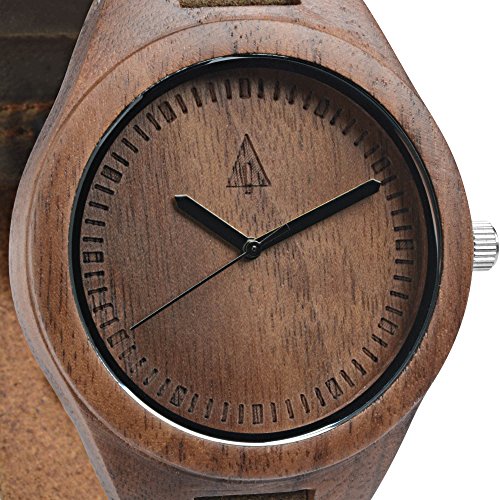Treehut's timepieces are making their mark in the watch industry for their trendy and modern design and eco-conscious materials. This wooden watch is handcrafted from real walnut wood with an unpainted polished wood grain finish. The diameter of the dial is 1.7 inches and surrounded by natural brown notches representing the hours and minutes. In addition, it features genuine soft leather straps with brown stitching. This product is highly light and durable. The wristwatch features 3 ATM water resistant. It and can withstand splashes of water or rain. The advantage of wooden watches over metal clocks is that the former do not wear down. In fact, wooden watches becomes even more stunning with age. Thus, making them a good choice when you really want a long-lasting time essential.