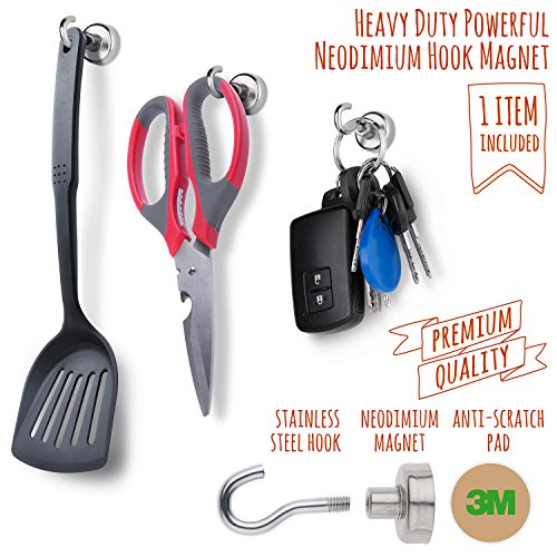 - USEFUL BONUS INCLUDED - Super strong neodymium hook magnet which can hold up to 19 pounds in direct pull, Hang a pan. scissors or even your car keys on the side of your fridge.