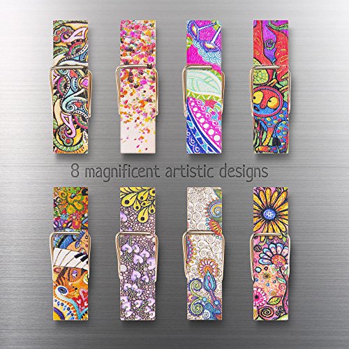 - UNIQUE, ARTSY & FUN - Whether it`s a kitchen, an office, a cubicle or even a locker Our magnetic clips unique colorful design will compliment any given area or surface you place them on.