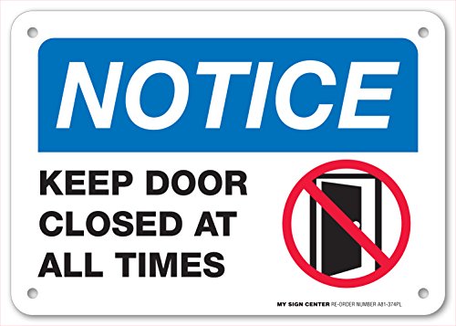 Notice Keep Door Closed At All Times Sign - 10"x7" -.060 Heavy Duty Plastic - UV Protected and Weatherproof - A81-374PL