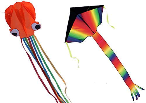 (Kissky)/Sports Outdoor Play/Kites Wind Spinners/DIRECT FROM USA/KISSKY 43.4-inch Huge Rainbow Color Kite 27.5-inch Octopus Kite with Line Flying Tools