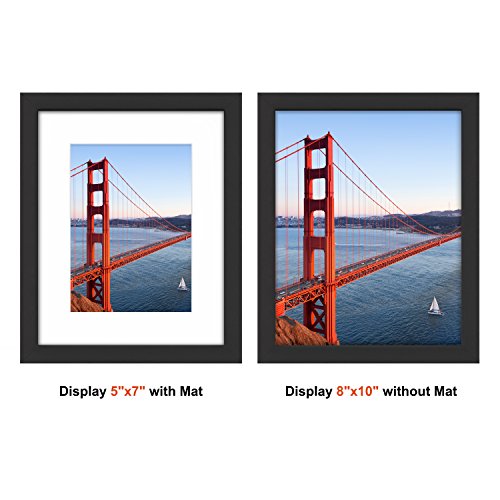 8x10 Picture Frame, UnityStar Black Photo Frame, Solid Wood Frame Display Pictures 5x7Inch with Mat and 8x10 without Mat,for Tabletop or Wall,Wall Mounting Material Included