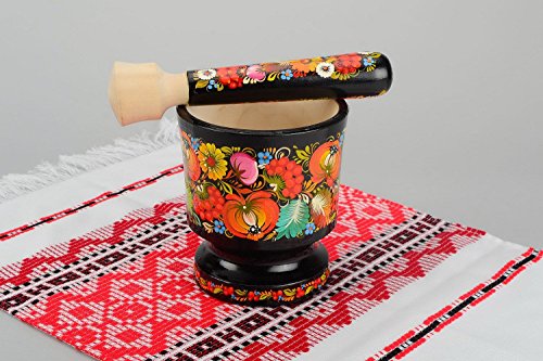 -. Feature : DETAILS - Wooden mortar and pestles are perfect for grinding spices. Eco-friendly kitchenware is very popular right now, thanks to its characteristics and amazingly ethnic design. This wooden mortar and pestles are made of linden, and painted by hand in traditional Petrikivsky style, that makes it not only useful, but also attractive in kitchen interior. /
