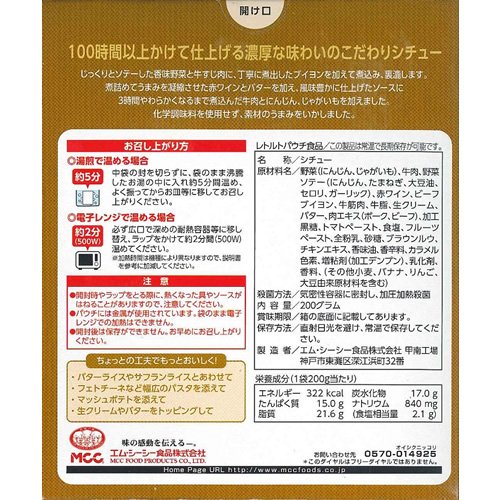 じっくりソテーした香味野菜と牛すじ肉に、丁寧に煮出したブイヨンを加えて煮込み裏漉します。煮詰めて旨味を凝縮させた赤ワインとバターを加え、風味豊かに仕上げたソースに3時間やわらかくなるまで煮込んだ牛肉とにんじん、じゃがいもを加えました。化学調味料を使用せず、素材の旨味をいかしました。