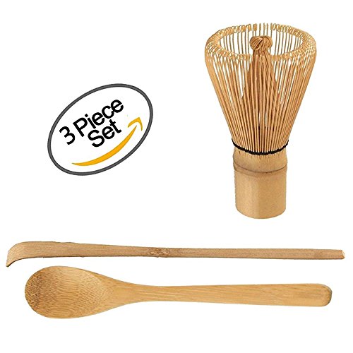 This set includes a bamboo Chasen, a Chashaku bamboo scoop for dishing out Matcha powder; The Matcha Chasen (bamboo tea whisk) comes in a clear tube for display; This set will help you whip up the perfect cup of lump free matcha.