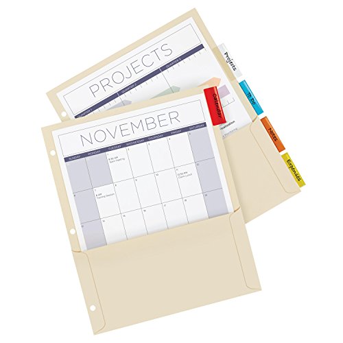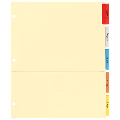 Avery Insertable Dividers with Pockets, Manila Paper, 5 Multicolor Tabs, 1 Set (81009)