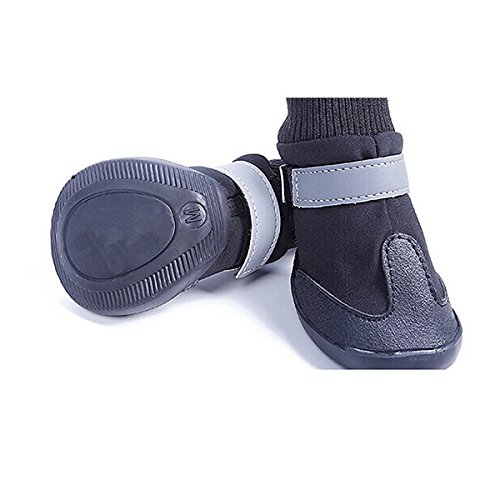 -. Feature : Color: mainly black. Material: Soft PU, terylen and thick lint. / Suitable for medium or large dogs. Parameters: Width (cm):6.0 Length (cm):6.4 / Designed as dog hiking boots, dog running shoes or general dog sports shoes for simply walking outside. / Can well protect your dog's paws from jagged stones, sand, snow or any abrasive surface, and keep their paws dry, clean, warm and comfortable. / Tough anti-slip soft soles design, ideal for all-weather use.