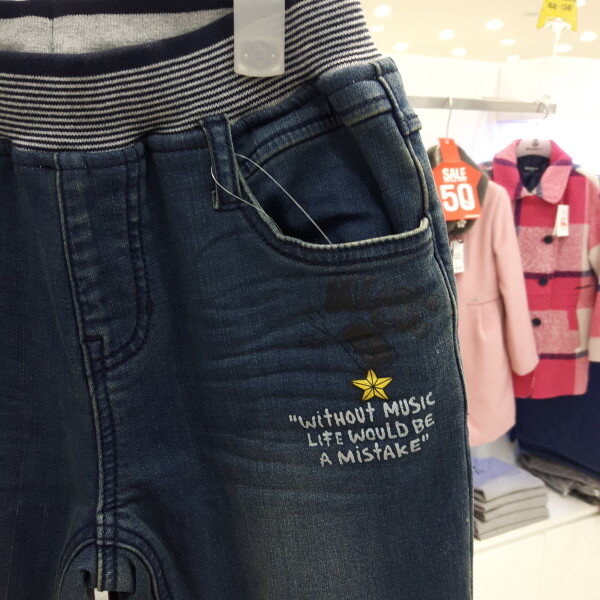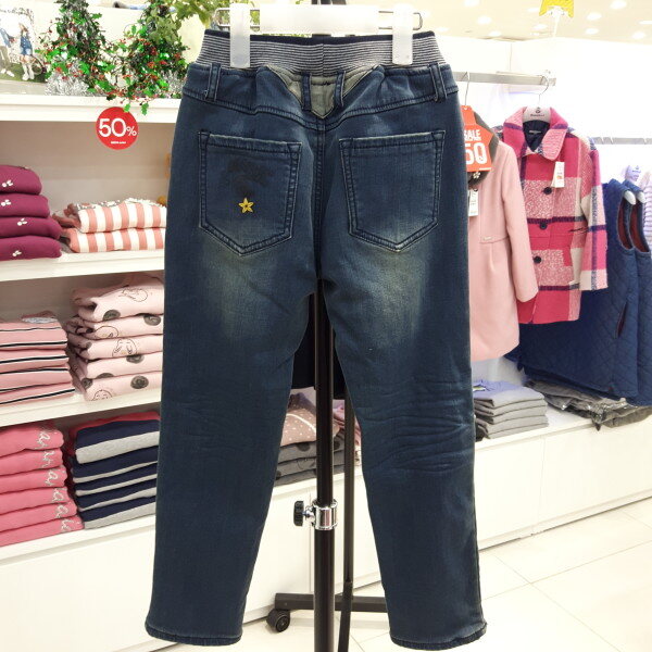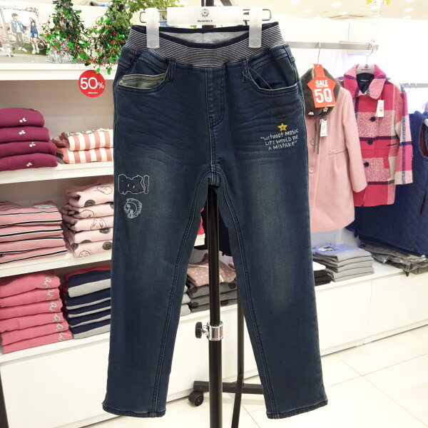영문 나염으로 된 기모청바지입니다 허리 전체 밴딩처리가 되어있어 입고 벗기 편리합니다