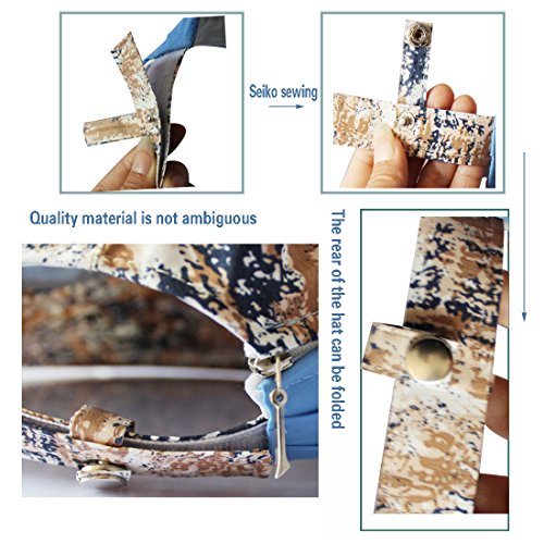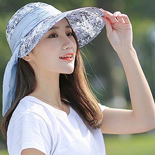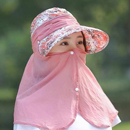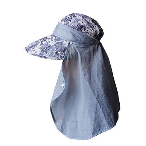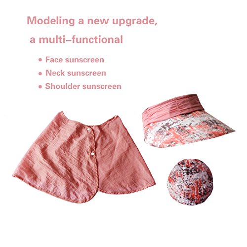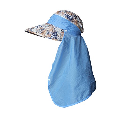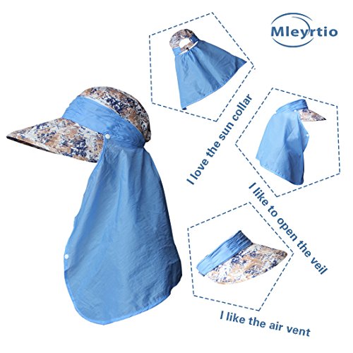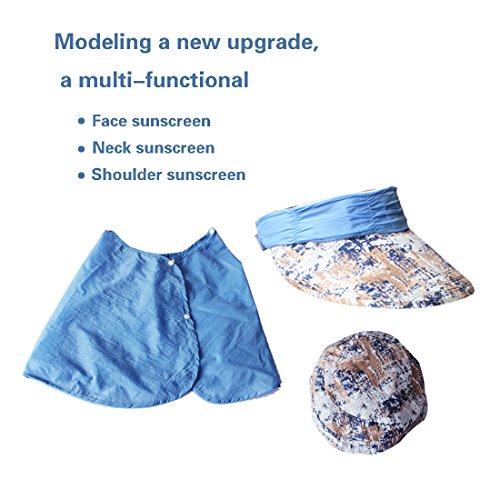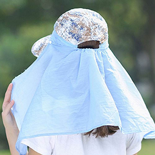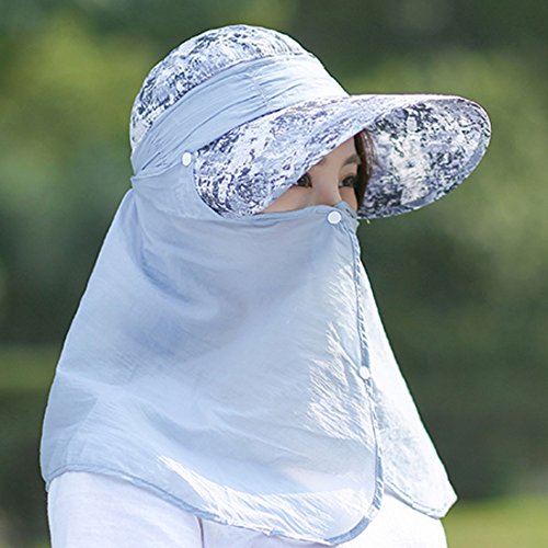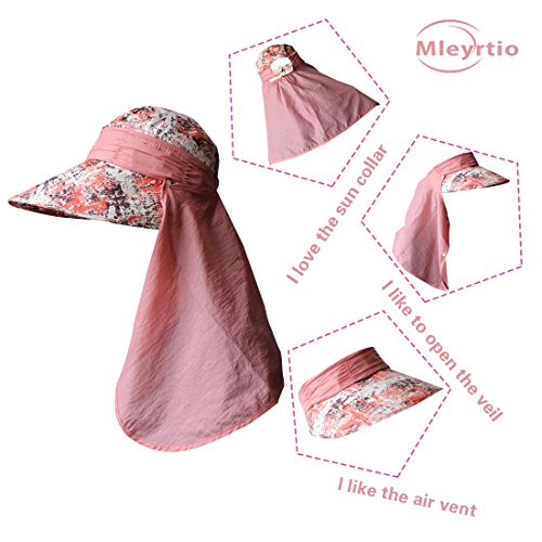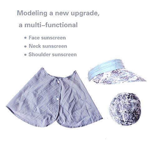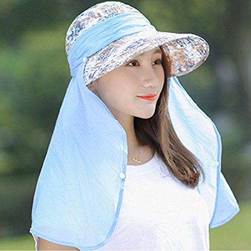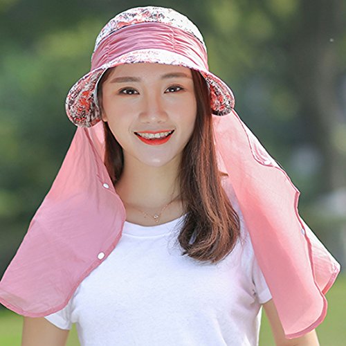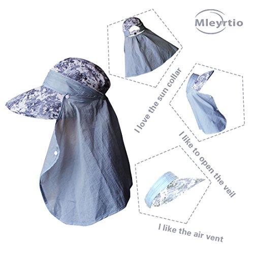 Device: Neck Cover Face Mask Caps Devise keeps the production in 360 degree. Material: 90% Polyester 10%cotton; Function: Multifunction Devise, The net mesh and neck protection can be removable and fold up. Move the zipper, remove the crowns, the cap can also becomes a visor hat ; Size:Circumference:35", Height: 3.5", Brim: 4.5"; UV Protection and Sun Protection:The cloth can reflect and absorpt most of radiation,the removable hat neck protection to protect back and side part of neck in 360 degree. Style:Floral Wide Brim hat , Wide Brim with Beautiful Floral Cloth, looks beautiful and comfortable.Remove the crown and the neck cover face mask, It is also a sun visors hats for women, Suitable for travel,Beach, Golf, Tennis, Fishings and other outdoor activities; Neck Cover Face Mask Caps have 5 Colors, Gray, Green, Pink, Red, Sky Blue, but the Brim Hat have the Floral color contain the 5 color, Look Like Denim Cloth. The Crown of the Cap Have the Same Color With the Brim Velcro Adjustable Ties: The Straps and Velcro Can be Adjusted, One Size Fits All, Velccro Closure With Bowknot The Suitable Season:Summer,spring,autumn; Gender:Female 0