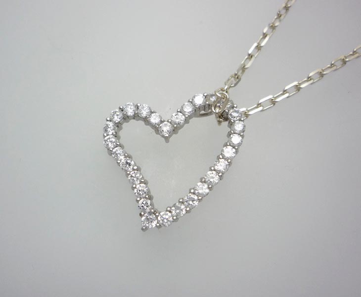 全体にホワイトジルコニアを使用したオープンハートタイプのネックレスです☆女性らしさを演出し胸元にキラリとセクシーに輝きます☆☆お得なシルバーチェーン付き!!チェーンは在庫状況により、写真と異なる場合がございます。ご了承下さい。
