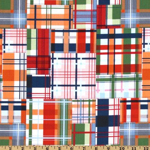 - Designed by Emily Herrick for Michael Miller Fabrics this cotton print features a madras patchwork design and is perfect for quilting and craft projects. Colors include orange denim blue green navy and white.