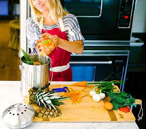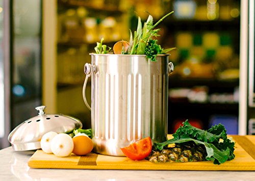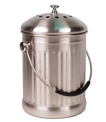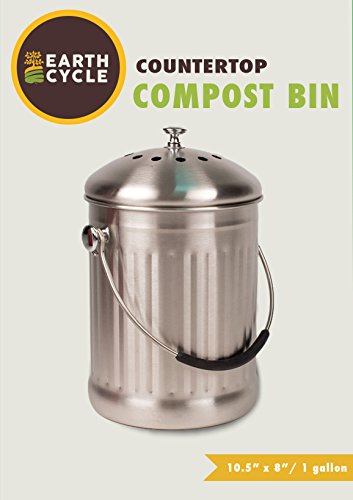 Stainless Steel Kitchen Countertop Compost Bin with Silicone Grip By Earth Cycle - 1 Gallon B00R9OPB5O